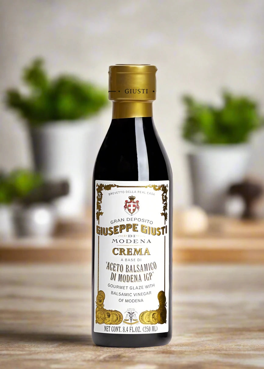 The Glaze with Balsamic Vinegar of Modena is creamy and delicate, rich of woody and spicy notes from Giusti balsamic vinegar. IGP product.